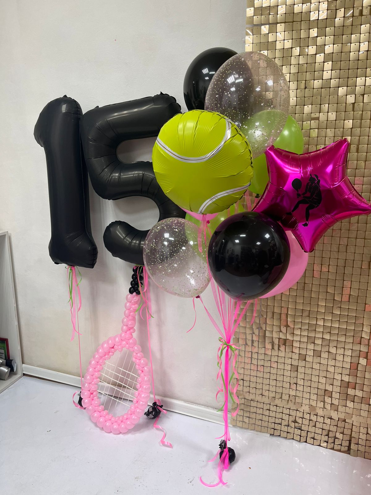 - фонтан (1 фольгированная звезда с надписью, фольгированный мяч, 2 шара с конфетти, 6 латексных шаров)